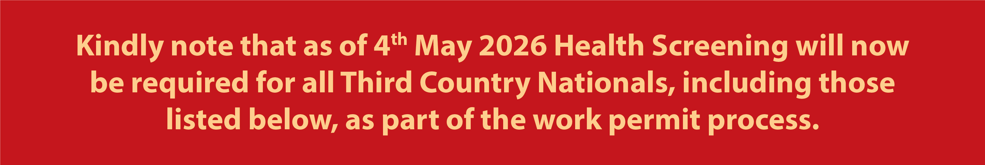 Those applicants who are NOT from these countries or did not spend 6 months or more in one of them, and are reapplying for the following jobs, DO NOT need to apply for health screening approval and can go directly to Identity Malta for work permit approval.